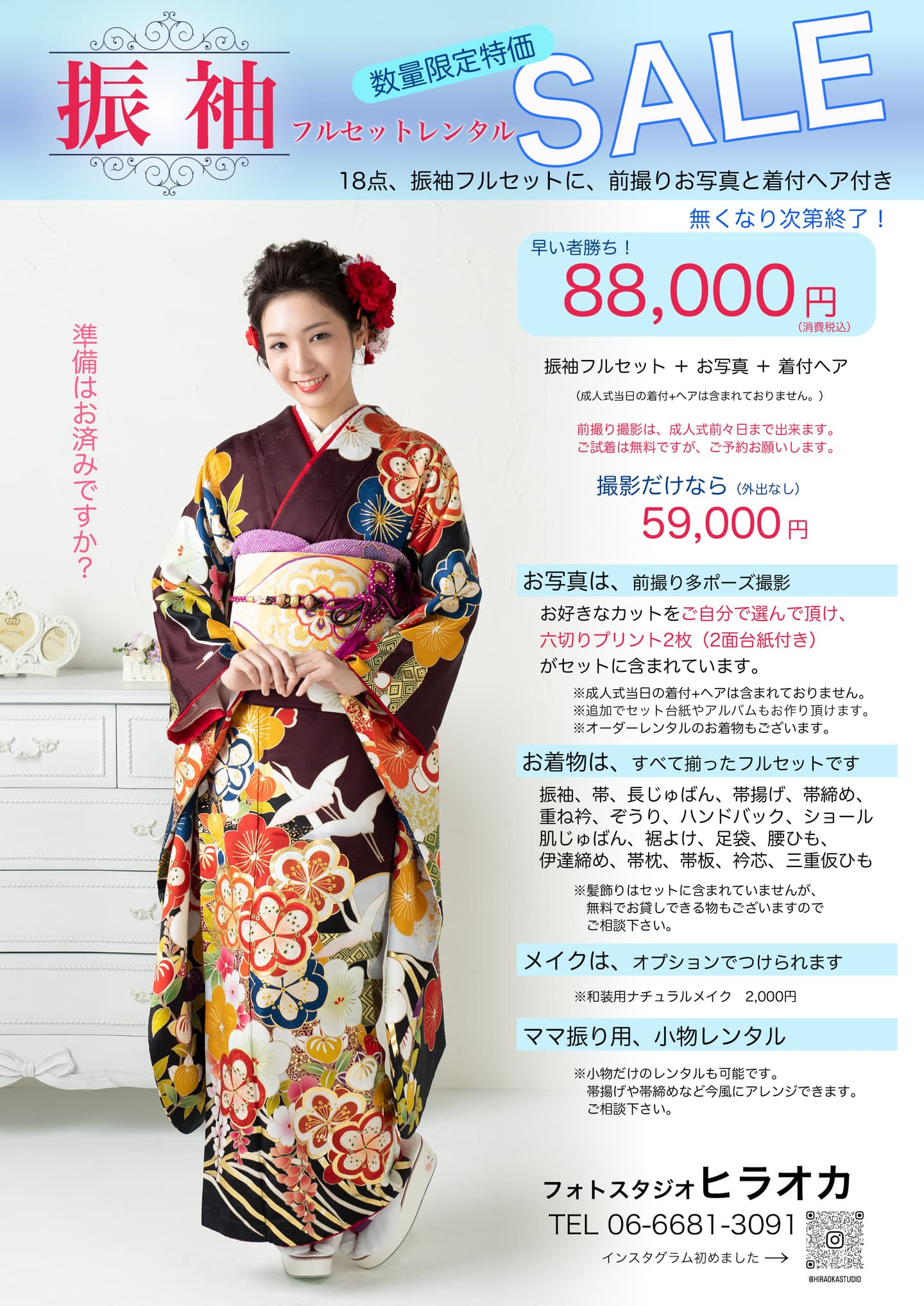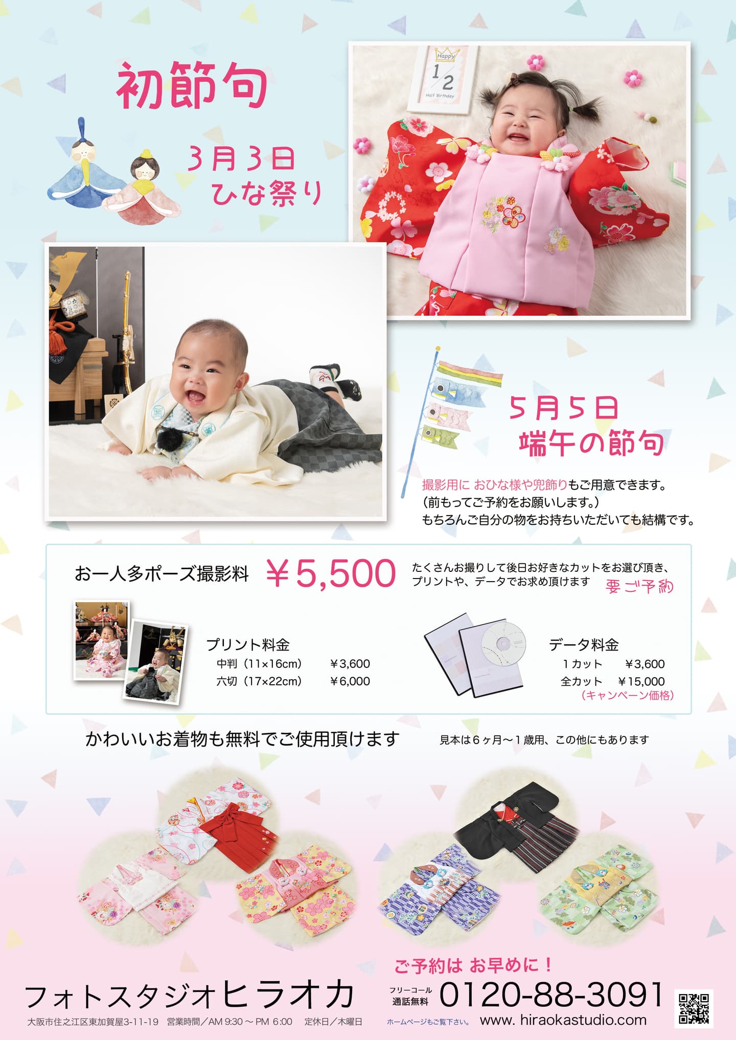 ー元気な今の「あなたらしさ」をお撮りしますー スナップ写真を引き伸ばすより、こだわりの1枚を用意してみては? お得なキャンペーン実施中 六切り写真 額付き 1枚 ¥11,500 (通常¥13,700) 遺影は永遠にそこにあって、家族と共に生き続けるもの。 ベビー&キッズ キャンペーン 6ヶ月〜5歳までのお子様対象。 七五三前撮りキャンペーン ゆっくり撮れる10月13日までに撮影を済ませて、衣装も充実しているうちにご予約出来、11月にもう一度着付けして神社にお出かけ出来ます。